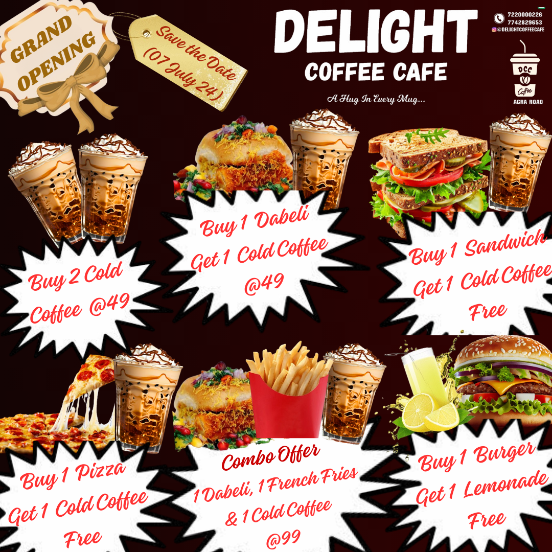 Welcome to Delight Coffee Cafe, an inviting haven located in the heart of Jaipur, where culinary delights meet a cozy ambiance. Their menu boasts a variety of pizzas, each priced affordably, starting with the classic Margarita Pizza at just ₹179. For the pasta lovers, the options are sure to tempt your taste buds.
